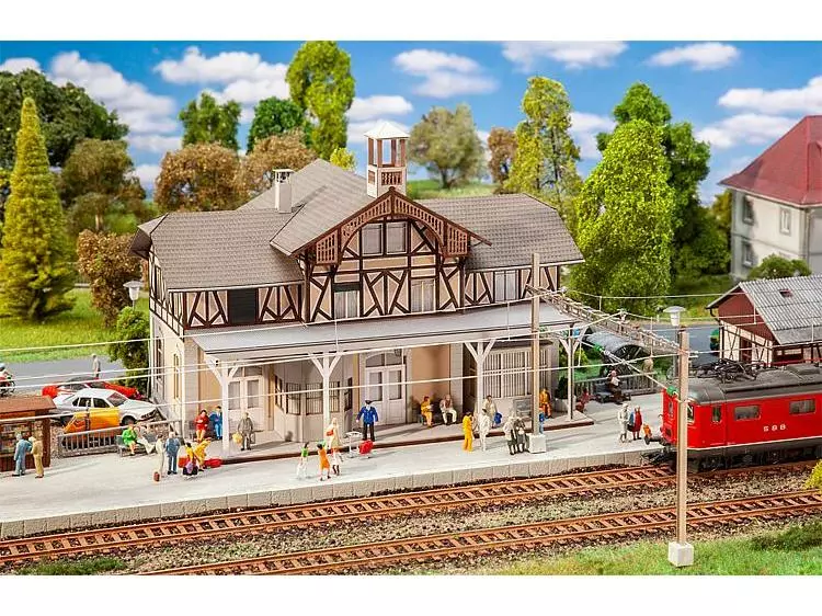 Der Bahnhof Beinwil liegt an der Seetallinie zwischen Emmen und dem aargauischen Lenzburg. Der typische Bahnhof besticht durch seinen Riegelbau und einem Vordach mit Holzsäulen. Die Formneuheit aus Echtholz und Grafikkarton überzeugt durch ihren hohen Detaillierungsgrad.