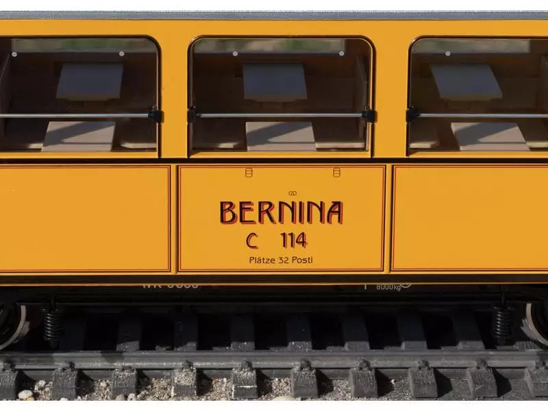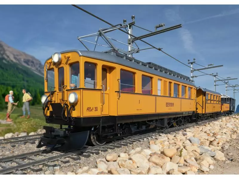 Modell des Triebwagens ABe 4/4 der RhB zum Einsatz auf der Berninabahn. Ausführung in der gelben Farbgebung Anfangszeit der Berninabahn, so wie der Wagen heute noch als Museumsfahrzeg im Einsatz ist. Originalgetreue Farbgebung und Beschriftung der Epoche VI. Alle 4 Radsätze von 2 leistungsstarken Bühler-Motoren angetrieben. Ausgerüstet mit einem mfx/DCC-Decoder mit vielen Licht- und Soundfunktionen. Komplette Inneneinrichtung, Türen zum Öffnen, Haftreifen, Innenbeleuchtung und Führerstandsbeleuchtung.