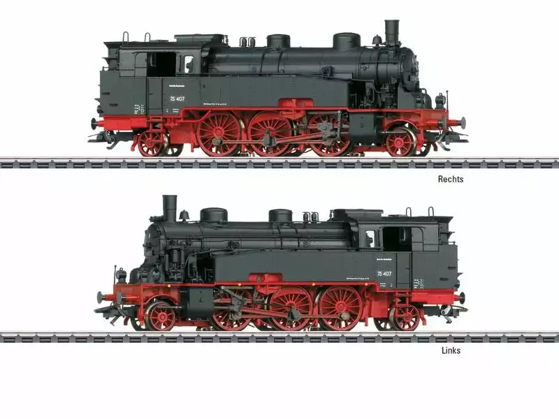 Mit Digital-Decoder mfx+ und umfangreichen Geräuschfunktionen. Geregelter Hochleistungsantrieb mit Schwungmasse im Kessel. Drei Achsen angetrieben. Haftreifen. Lokomotive weitgehend aus Metall. Eingerichtet für Rauchsatz 72270. Fahrtrichtungsabhängig wechselndes Zweilicht-Spitzensignal und Rauchsatzkontakt konventionell in Betrieb, digital schaltbar. Beleuchtung mit wartungsfreien warmweissen Leuchtdioden (LED). Zahlreiche angesetzte Griffstangen und Leitungen aus Metall. Befahrbarer Mindestradius 360 mm. Kolbenstangenschutzrohre und Bremsschläuche liegen bei. Länge über Puffer 14.6 cm.