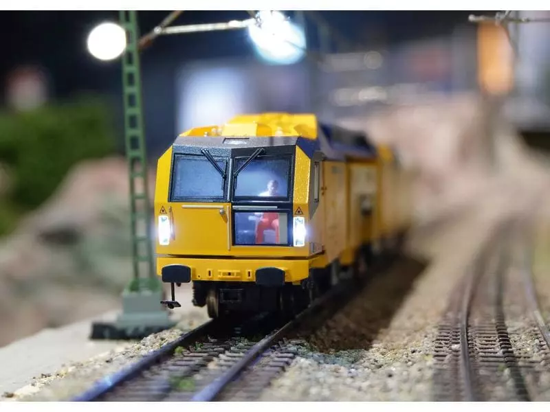 Reines Digitalmodell mit Digital-Decoder mfx und umfangreichen Geräuschfunktionen. Modell weitestgehend aus Metall. 4 Achsen über zwei synchronisierte Motoren angetrieben. Stopfeinheit in vertikaler und horizontaler Richtung bewegbar, wahlweise einzeln zu schalten oder im komplett synchronisierten Arbeitsmodus. Fahrtrichtungsabhängig wechselndes Dreilicht-Spitzensignal und zwei rote Schlusslichter konventionell in Betrieb, digital schaltbar. Spitzensignal an Lokseite 2 und 1 jeweils digital separat abschaltbar. Doppel-A-Licht-Funktion. Fern- und Bremslicht sowie Dachblinklichter zuschaltbar. Beleuchtung mit wartungsfreien warmweissen und roten Leuchtdioden. Führerstand mit Einrichtung und schaltbarer Innenbeleuchtung, vorbildgerecht umschaltbar auf blaue oder weisse Beleuchtung. Arbeitskabinenbeleuchtung schaltbar. Stromabnehmer digital heb- und senkbar. Automatischer Wechsel vom Diesel- zum Elektrofahrgeräusch bei gehobenem Stromabnehmer.