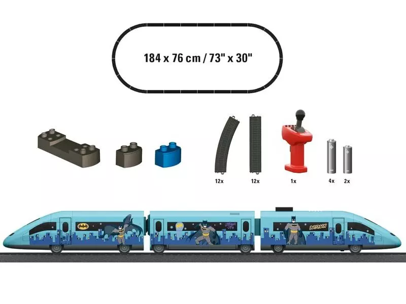 Zug mit Batterieantrieb und Magnetkupplungen zwischen den Zugteilen. Festgekuppelte Einheit bestehend aus motorisiertem Triebkopf und einem Personenwagen mit integriertem Batteriefach. Jeweils 3 Geschwindigkeitsstufen bei Vorwärts- und Rückwärtsfahrt, sowie 3 Soundfunktionen und ein Dreilicht-Spitzensignal, sind über das kabellose, kindgerechte Infrarot-Fahrgerät, den Märklin Power Control Stick steuerbar. Länge des Zuges 41 cm.