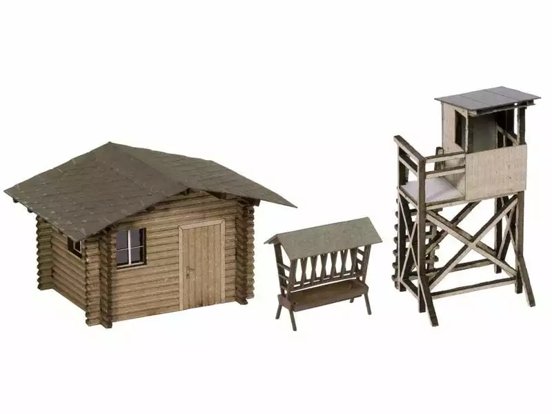- 1 x Waldhütte, 1 x Jägerstand, 1 x Futterkrippe