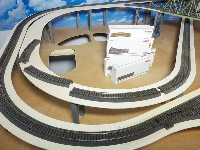 Wie das Vorbild von Andreas Theis, könnte Ihre Anlage aussehen. Oder vielleicht auch ganz anders? Sie haben es in der Hand, denn dank des Easy-Track Bausatzes können Sie die Modell-Landschaft ganz nach Ihren individuellen Vorstellungen gestalten. Die technisch aufwendige Gleisplanung hingegen haben wir Ihnen abgenommen. Alle Teile wie Fahrbahnsegmente, Ständer und Bodenplatten für den Aufbau der unten abgebildeten Trassenführung finden Sie mitsamt eines 1:1 Aufbauplans im Bausatz.