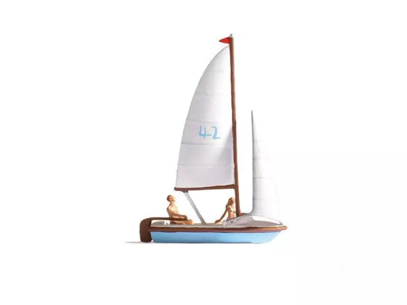 Setzen Sie auf den Flüssen und Seen Ihrer Modellbahnanlage einen mit diesem Segelboot einen liebevollen Akzent. Zusätzlich zum Boot aus Kunststoff sind im Lieferumfang zwei Passagiere enthalten.