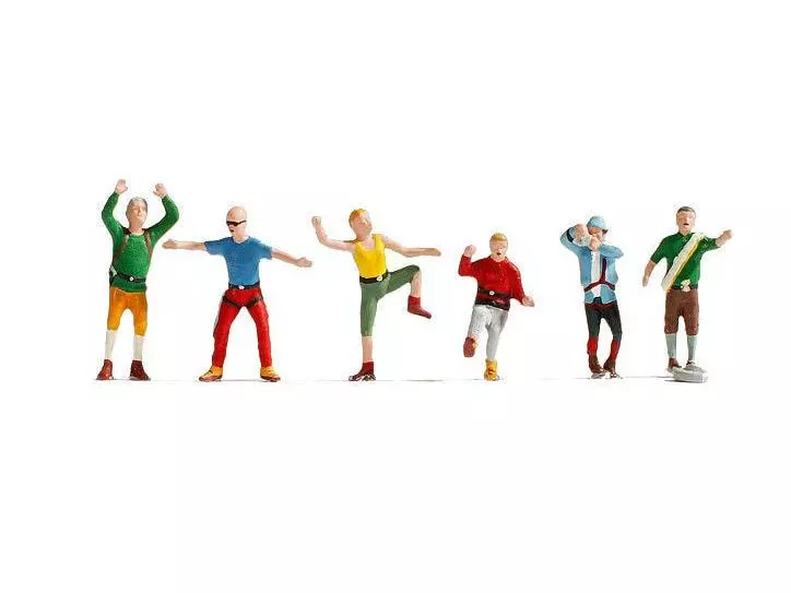 Die Figuren des Bergsteiger-Sets von Noch sind in unterschiedlichen Posen gestaltet worden und können bei Bedarf an einem Berg oder am Boden eingesetzt werden. Die zahlreichen liebevollen Details lassen den Betrachter immer wieder neue Feinheiten entdecken.