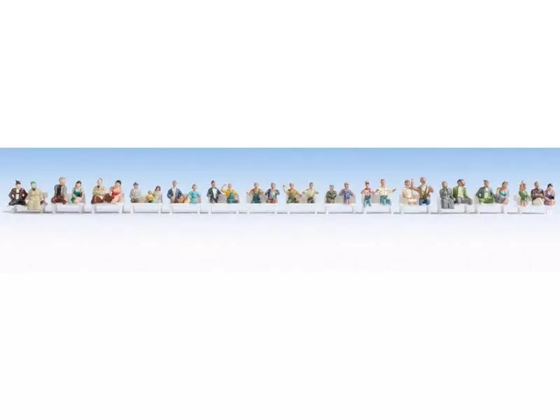 Menschen und Tiere dürfen auf keiner Modellbahnanlage fehlen, verleihen sie doch der aufwändig gestalteten Landschaft erst den letzten Schliff. Im Set sind 30 Personen in sitzender Körperhaltung ohne Beine enthalten. Die Figuren im Massstab 1:87 sind handkoloriert und eignen sich besonders für die Ausschmückung Ihrer Reisezugwagen.