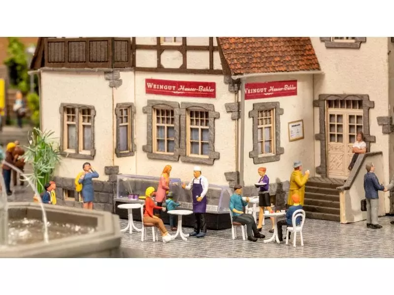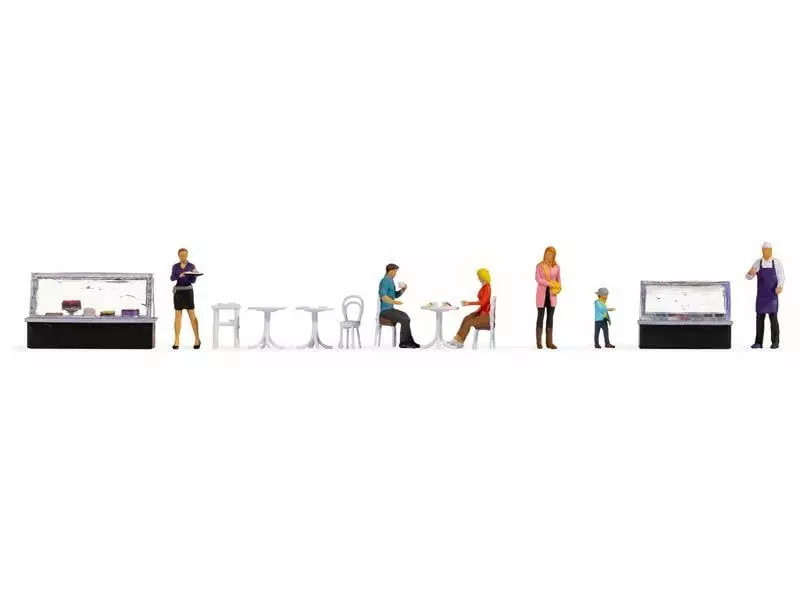 Wenn die Tage länger werden und die Temperaturen steigen zieht es die Menschen ins Freie. Strassen und Plätze werden wieder bevölkert und die Menschen geniessen ihren Kaffee in der wärmenden Sonne. Unser Modell-Café bietet alles, was sich sonnenhungrige Geniesser wünschen: schmackhafte Kuchen und cremige Torten sowie eine riesige Auswahl unterschiedlicher Eissorten. Den perfekten Service garantieren ein kompetenter Eisverkäufer und eine freundliche Servicekraft.