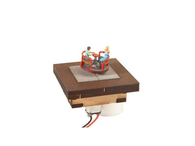 Das NOCH «micro-motion Kinderkarussell» eignet sich hervorragend, um einen Kinderspielplatz wie in der Wirklichkeit nachzugestalten und in Szene zu setzen. Das Kinderkarussell unter den Spielgeräten auf einem Spielplatz lieben wirklich alle Kinder. Mit aller Kraft wird der Kreisel in der Mitte gedreht, um eine schnelle Geschwindigkeit zu bekommen. Aber aufgepasst… richtiges festhalten am Rand ist sehr wichtig, um schlimme Unfälle zu vermeiden. Wenn man die Augen schliesst spürt man die Drehungen noch intenstiver und man fühlt sich als ob man fliegen kann. Neben der Kinderschaukel, der Vogelnestschaukel, einer Rutsche und dem Sandkasten darf das Kinderkarussell auf keinem Spielplatz fehlen. Hier zeigt sich wer wirklich Kraft hat und das Karussell so richtig in Schwung bringt. Glücklich und schwankend von den starken Drehungen steigen die Kinder nach einer wilden Fahrt im Karussell aus und müssen aus dem Drehwurm erst einmal wieder rauskommen. Hier ist Spass für Jung und Alt vorporgrammiert und wilde Fahrten bringen die Kinderaugen zum Leuchten.
