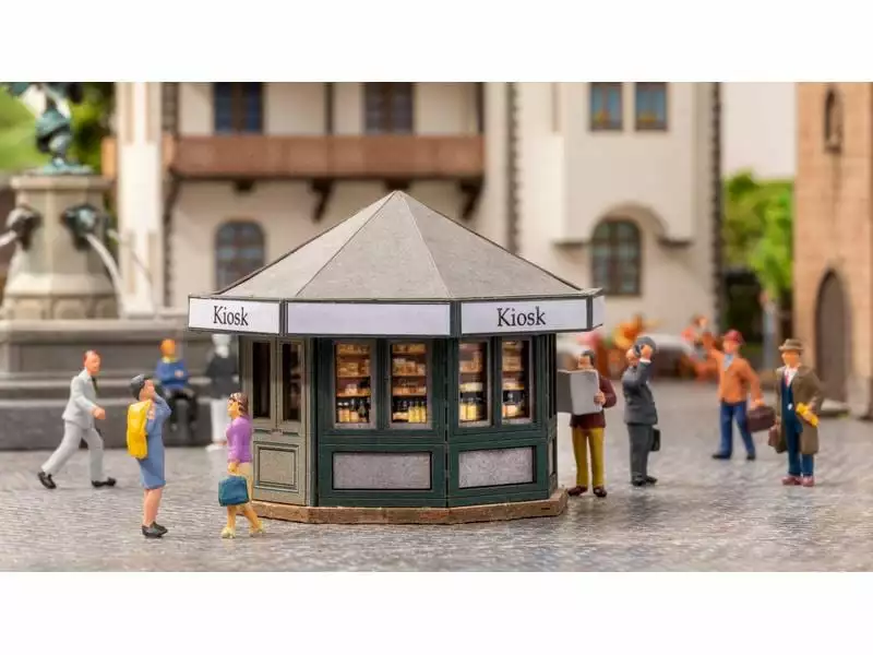 Der NOCH «Kiosk» unter den Laser-Cut minis eignet sich ideal, um einen Landschaftsszene auf der Modelleisenbahn mit realistischen Szenen auszugestalten. Wenn man unterwegs ist und einen der Hunger packt ist der «Kiosk» genau das richtige. Unterschiedliche Snacks bringen einen gut gesättigt durch den Tag. Ob Pommes, Wurstsemmel, Eis, Getränke, Souvenirs, Waffeln oder andere Leckerein stärken hier Gross und Klein bei einem Ausflug. Bringen Sie diese alltägliche Szene auf Ihre Modellanlage und sorgen Sie hiermit für einen echten Hingucker.