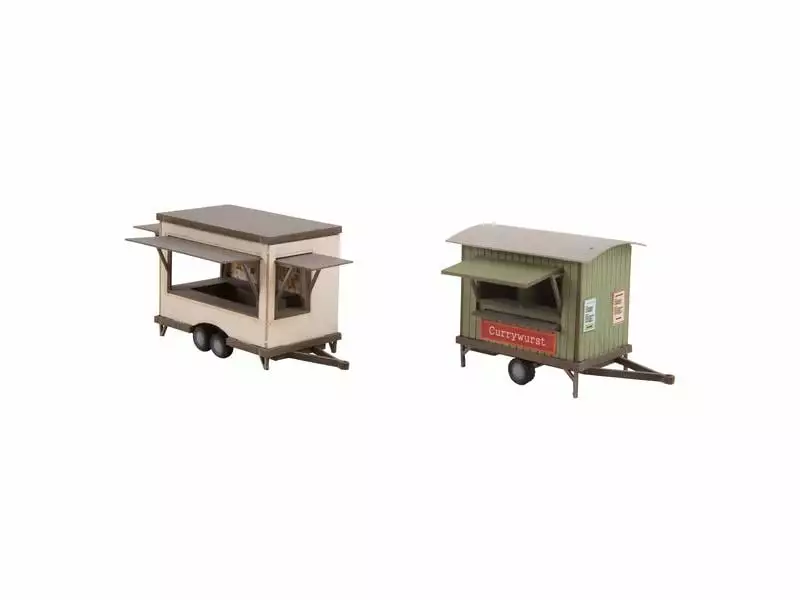 Die NOCH «Mobile Imbissstände» eignet sich hervorragend, um alltägliche Szenen auch auf der Modelleisenbahn unterzubringen. Wer kennt es nicht, wenn man in der Stadt beim Bummeln ist und sich eine Stärkung gönnen möchte. Da eignen sich die mobilen Imbissstände hervorragend. Leckere Snacks für Zwischendurch geben einem Kraft für den Tag. Ob ein Wurstwecken, knackige Pommes oder ein gesunder Snack wie ein Salat – hier gibt es wirklich für jeden eine Leckerei. Am Eisstand um die Ecke wird der Tag mit einem leckeren Eis abgerundet.