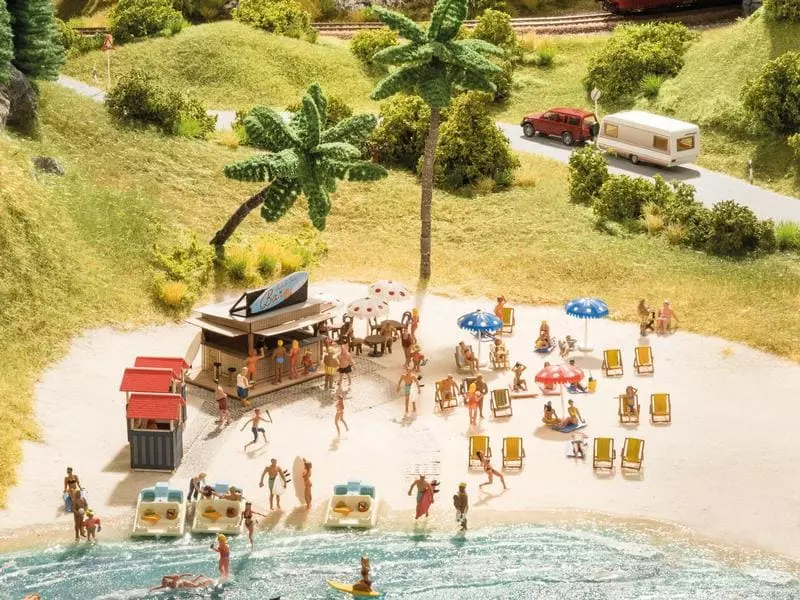 Mit den attraktriven Palmen dekorieren Sie tropische Strände und mediterrane Landschaften. Die «Palme» eignet sich ideal dafür, um jede sommerliche Modelllandschaft mit noch mehr wirklichkeitsgetreuen Ausgestaltung in Szene zu setzen. An warmen Sommertagen zieht es die Menschen in den Urlaub, wo sie am Meer und unter Palmen so richtig entspannen können. Palmen geben Schatten, bei den heissen Temperaturen die wo der Sonne auf die Erde knallen. Die Kinder spielen unter der «Palme» im Sand und bauen grosse Sandburgen und die Erwachsenen brutzeln sich in der Somerhitze. Aber aufgepasst – da bekommt man schnell einen Sonnenbrand! Gestalten Sie mir der ideal nachgestalteten «Palme»eine noch idyllischere und sommerliche Landsschaftsszene auf jeder Modellbahn und setzten Sie diese in Szene. In unserer Serie mediterraner Bäume finden Sie zudem Pinien, Mandelbäume, Olivenbäume und Zypressen. Dem Bau Ihres südländischen Dioramas steht also nichts mehr im Weg.