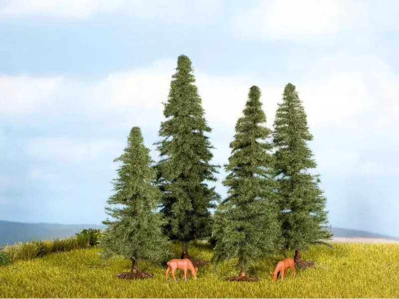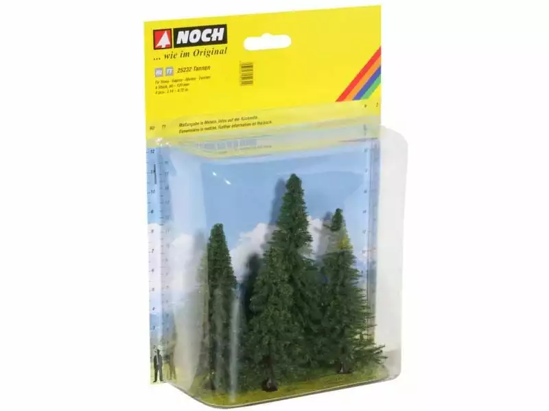 Mit diesen Tannen aus der Classic-Serie von Noch forsten Sie vorbildgetreu ganze Wälder auf Ihrer Modellbahnanlage auf. Die Bäume sind jeweils zwischen acht und zwölf Zentimetern hoch.