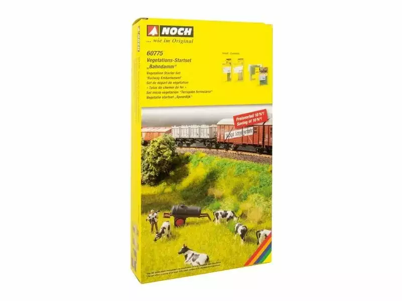 Daran kommt kein Modellbahner vorbei: Ein Bahndamm samt entsprechender Vegetation gehört auf jede Anlage! Bahndämme sind im Vorbild zwar meist zugewuchert aber meistens rudimentär gepflegt. Die Vegetation mit Gräsern, Bodendeckern und Ranken trägt zur Verfestigung des Bahndamms und damit zur Betriebssicherheit der Strecke bei. Mit dem Vegatations-Startset von NOCH haben Sie von Anfang an alles zur Hand!
